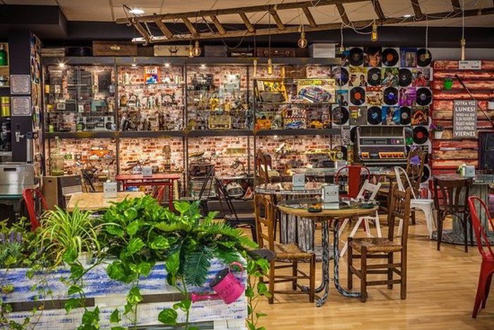 The shop is filled to the brim with a superb display of jamon Iberico- wine -cheese and olive oil There is also a cafeteria-bar where all the products on display can be sampled either sitting at the bar or at the tables amongst what can only be described a “museum of Spanish nostalgia”.