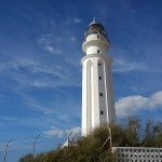 Trafalgar’s most visible landmark is its lighthouse, built on the ruins of an ancient Roman watchtower, and alongside the ruins of a Moorish lighthouse, but is located on the cape a few hundred metres from the main beach. The lighthouse sits on a small islet known as the Tombola de Trafalgar, which is connected to the mainland by a short sand dune.